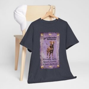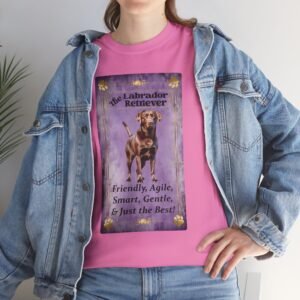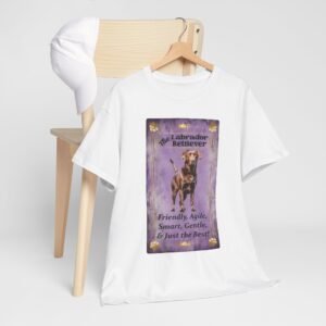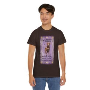 Show off your love of Labrador Retrievers with this unique custom designed tarot card on a comfortable t-shirt.  This unique design makes a great gift for any Chocolate Lab lover. The unisex heavy cotton tee is the basic staple of any wardrobe and was selected to show off our designs and your unique personality.
