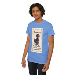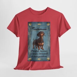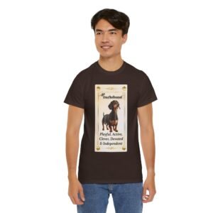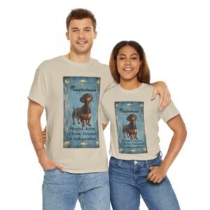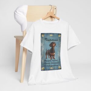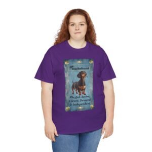 Show off your love of Dachshunds with this unique custom designed tarot card on a comfortable t-shirt. This unique design makes a great gift for any weiner dog lover. The unisex heavy cotton tee is the basic staple of any wardrobe and was selected to show off our designs and your unique personality.