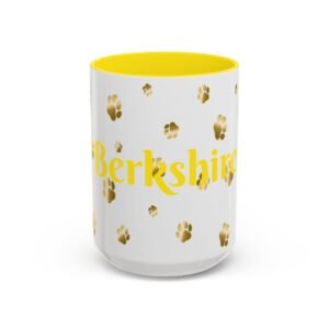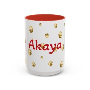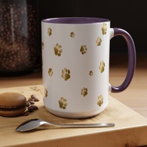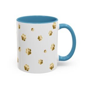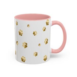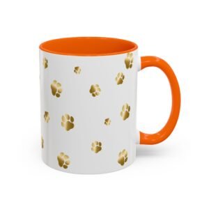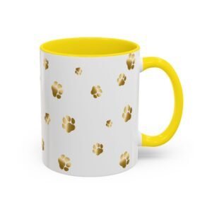 Show off your love for your dog or other furry friend with this unique golden paw print mug. We offer personalization options that include text colors that match the mug accent color. This is a great gift for any animal lover and you can order it just like it is, or easily add a name of your furry friend or human friend.