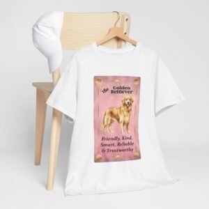 Show off your love of Golden Retrievers with this unique custom designed tarot card on a comfortable t-shirt. This unique design makes a great gift for any Golden lover. The unisex heavy cotton tee is the basic staple of any wardrobe and was selected to show off our designs and your unique personality.