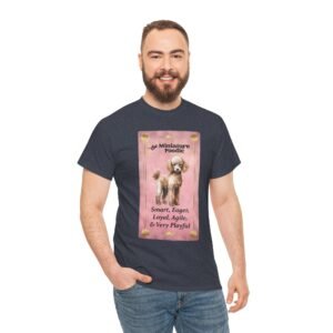 Show off your love of Miniature Poodles with this unique custom designed tarot card on a comfortable t-shirt.  This unique design makes a great gift for any Poodle lover. The unisex heavy cotton tee is the basic staple of any wardrobe and was selected to show off our designs and your unique personality.