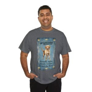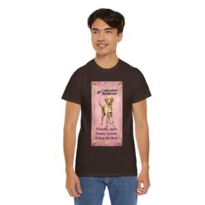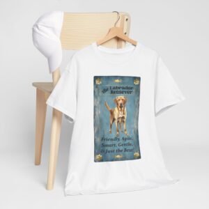 Show off your love of Labrador Retrievers with this unique custom designed tarot card on a comfortable t-shirt. This unique design makes a great gift for any Yellow Lab lover. The unisex heavy cotton tee is the basic staple of any wardrobe and was selected to show off our designs and your unique personality.